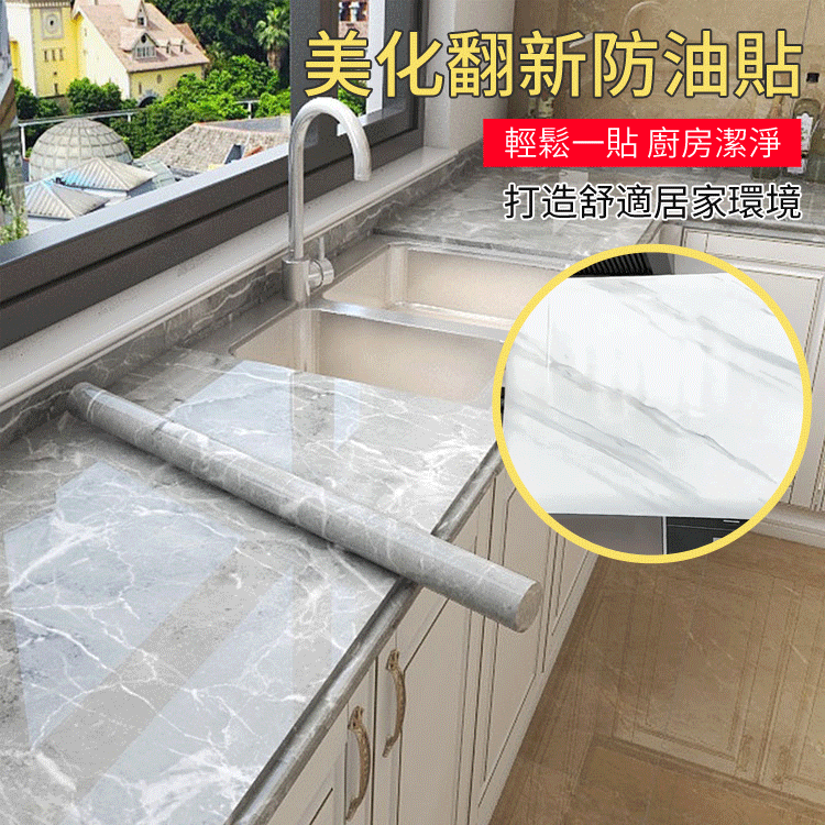 7分鐘前限時搶購 廚房貼紙防水防油大理石家具貼膜自粘牆紙瓷磚灶台桌面櫃子保護膜 - 8卷【1卷僅需149】NT$1199