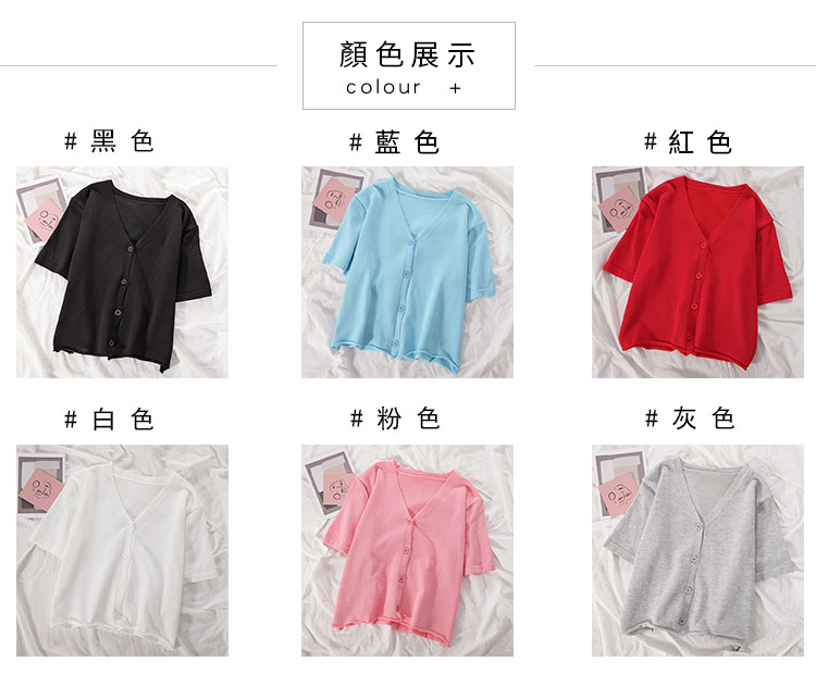 半小時前氣質v領薄款打底針織衫,2020夏季新款女裝短款開衫上衣 - 【買一送三】任選4件,僅需NT$1198