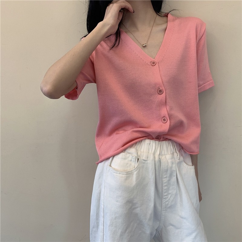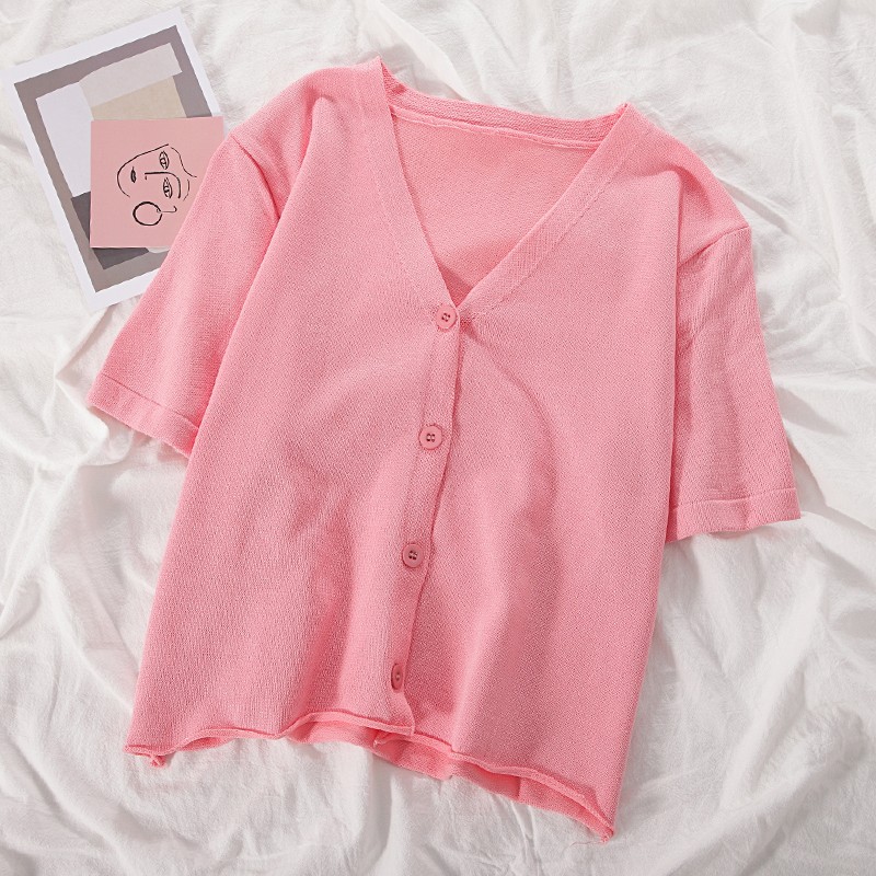 5分鐘前氣質v領薄款打底針織衫,2020夏季新款女裝短款開衫上衣 - 【買一送二】任選3件,僅需NT$1098