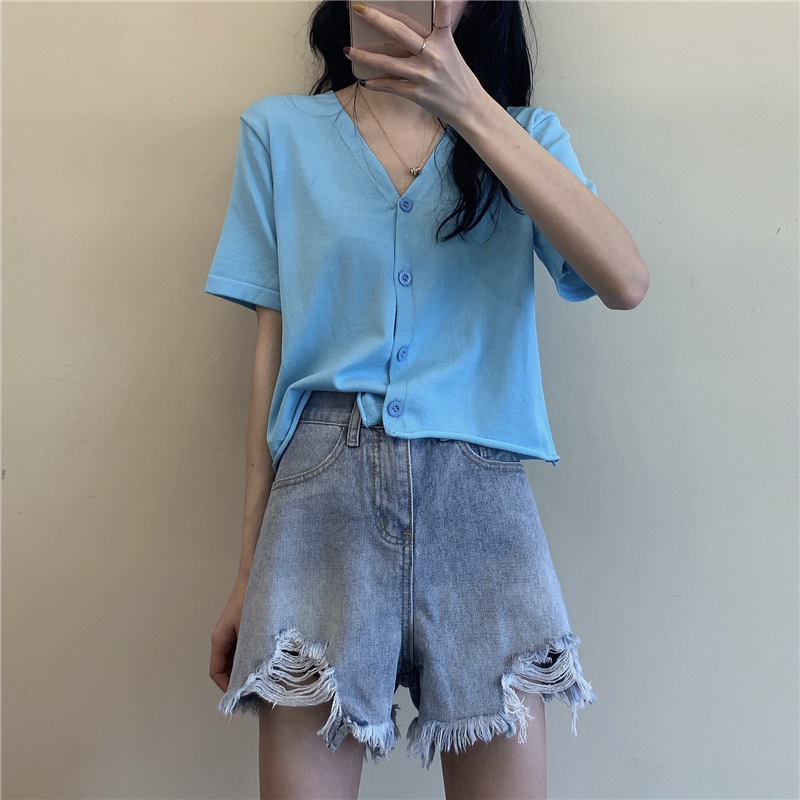 半小時前氣質v領薄款打底針織衫,2020夏季新款女裝短款開衫上衣 - 【買一送二】任選3件,僅需NT$1098